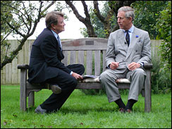 "Yes, exactly," the prince said, laughing. "Oh, dear. I think, that the most important thing is to be relevant. I mean, it isn't easy, as you can imagine. Because if you say anything, people will say, `It's all right for you to say that.' It's very easy to just dismiss anything I say. I mean, it's difficult. But what I've tried to do is to put my money where my mouth is as much as I can, by actually